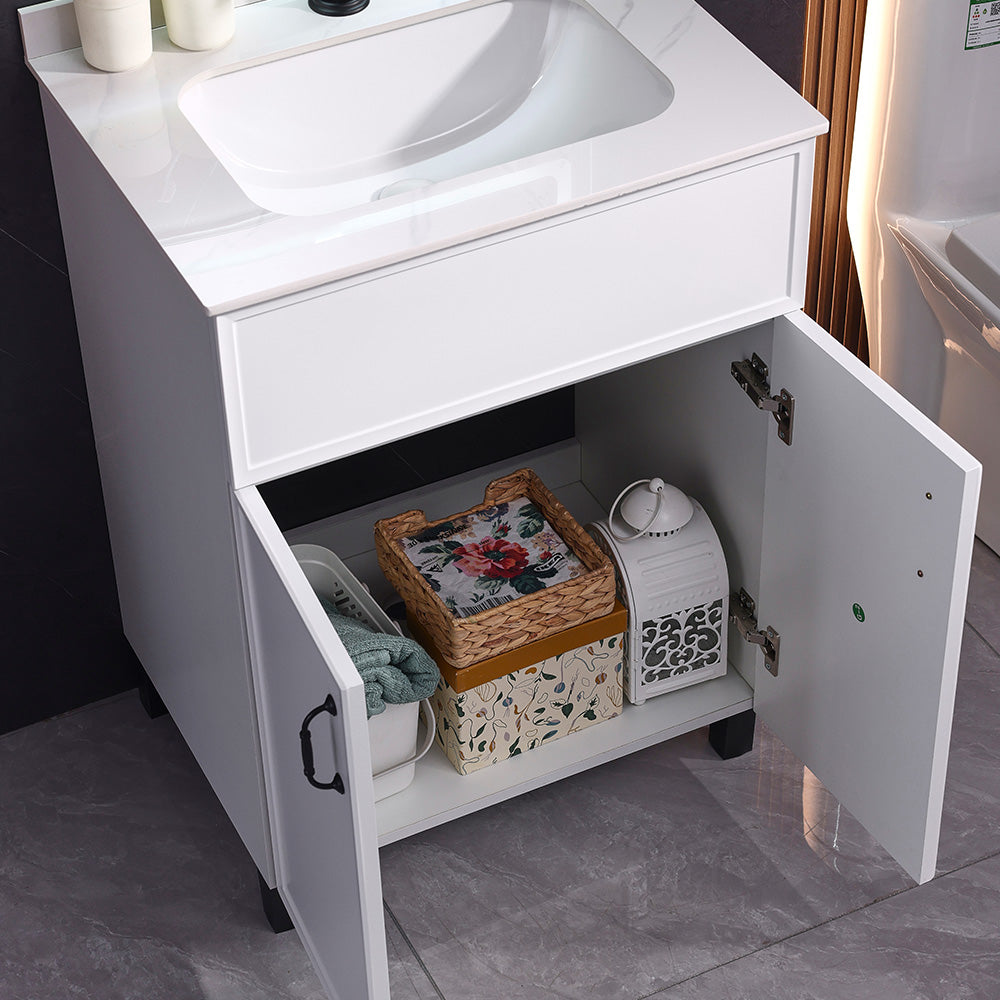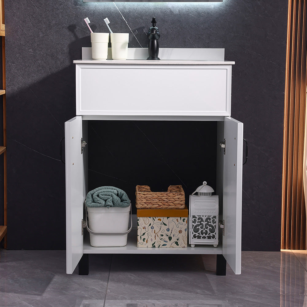 Upgrade your bathroom with the Auralis 24" Bathroom Vanity with Sink—a stylish and functional solution for small spaces. This freestanding vanity features a durable ceramic sink and a sleek white MDF cabinet with two soft-close doors, offering ample storage for daily essentials like towels, toiletries, and more.