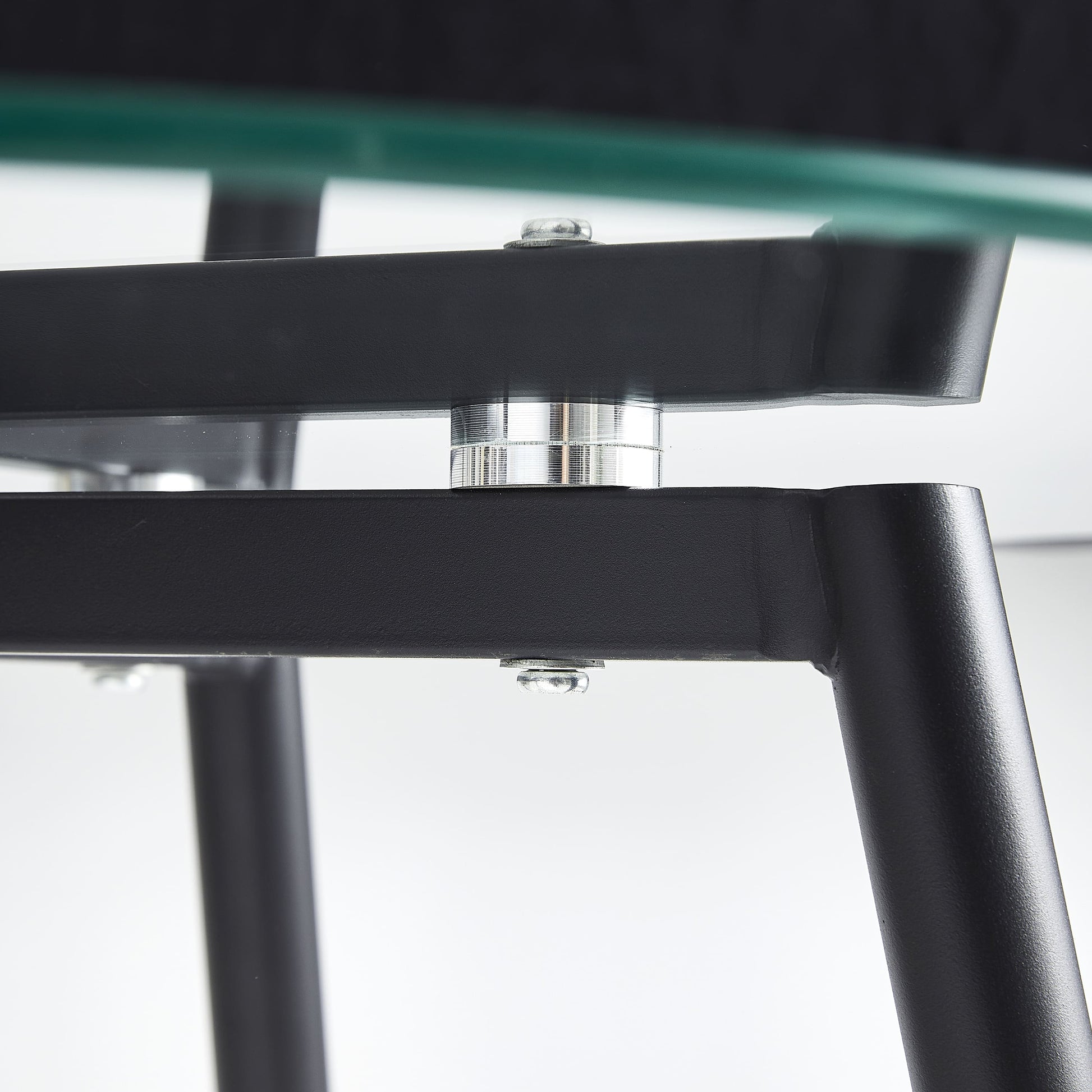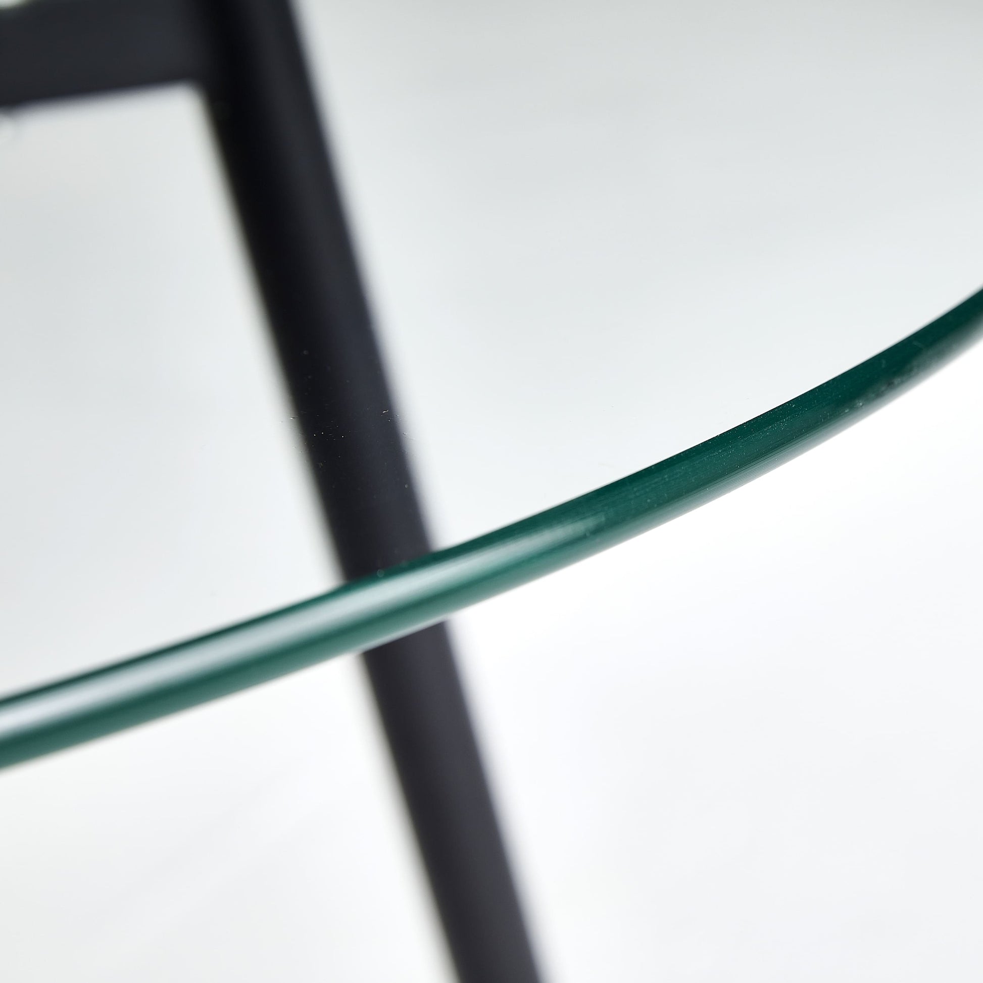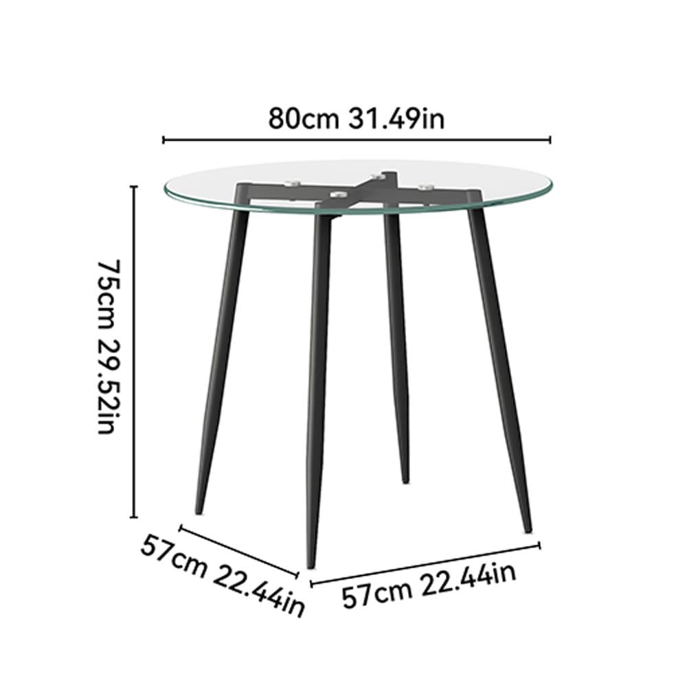 Upgrade your space with this round glass dining table—perfect for seating 4. It features a clear tempered glass top, chrome-finished legs, and a compact 35.4" diameter, ideal for small dining areas, apartments, or offices. The surface is waterproof, wear-resistant, and easy to clean. Assembly is simple, with adjustable foot pads for added stability.
